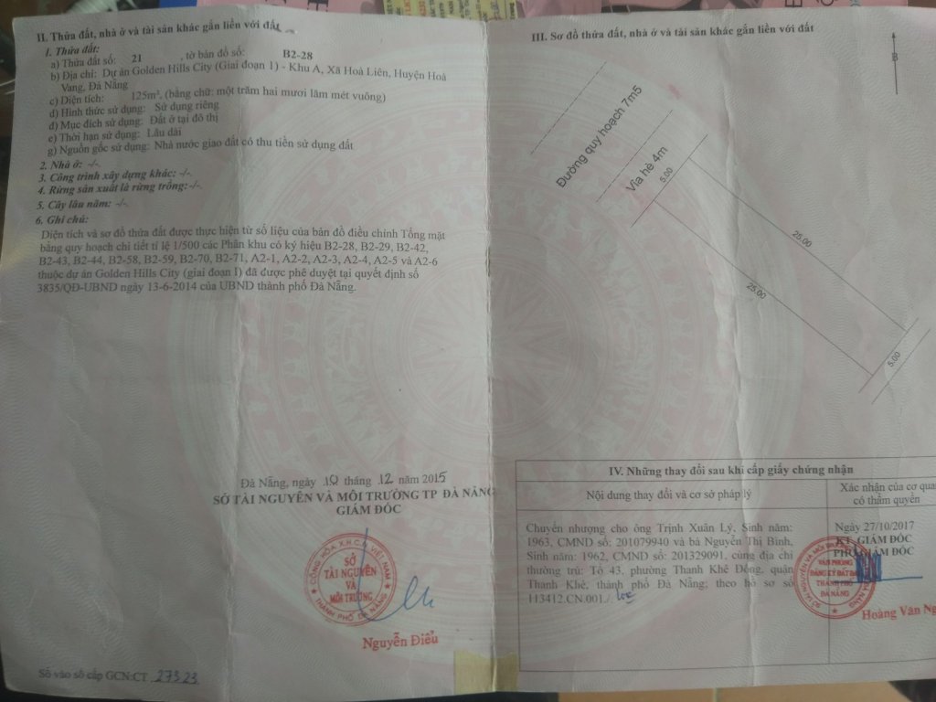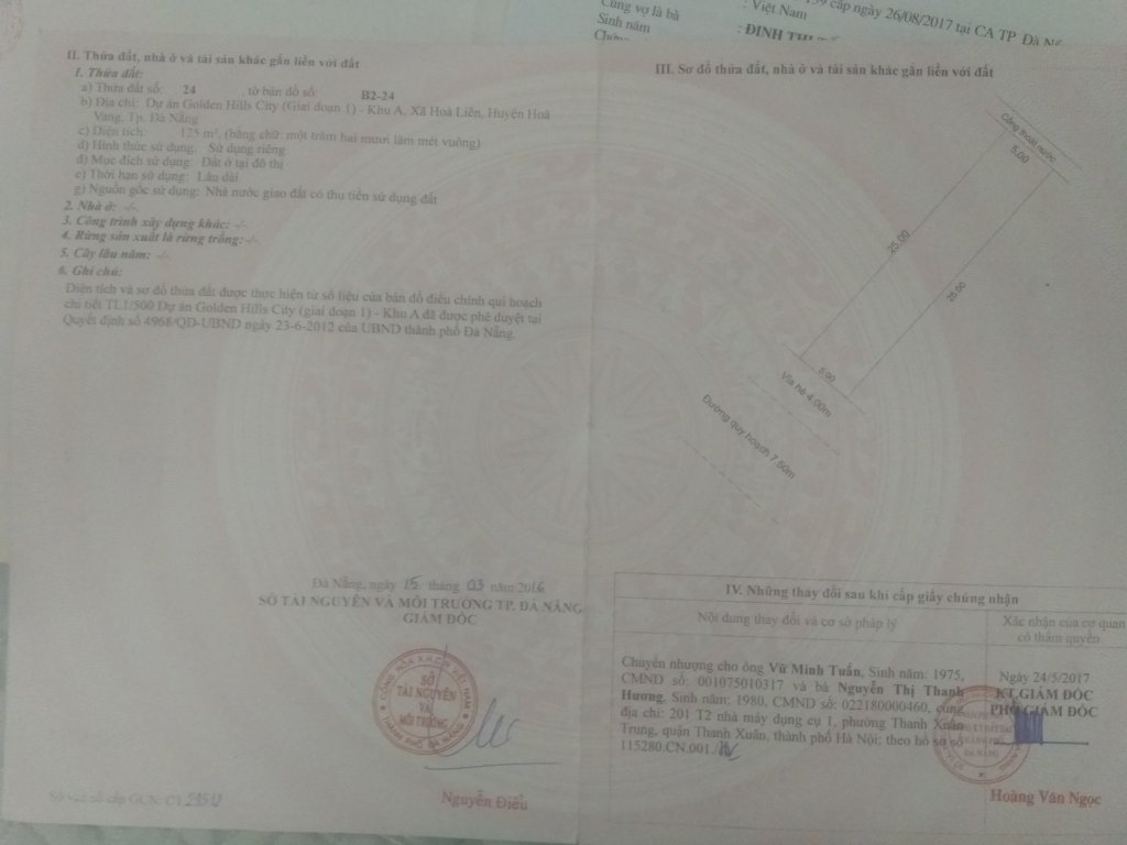 Bán 2 lô Goden hills đường 7m5, diện tích 125m