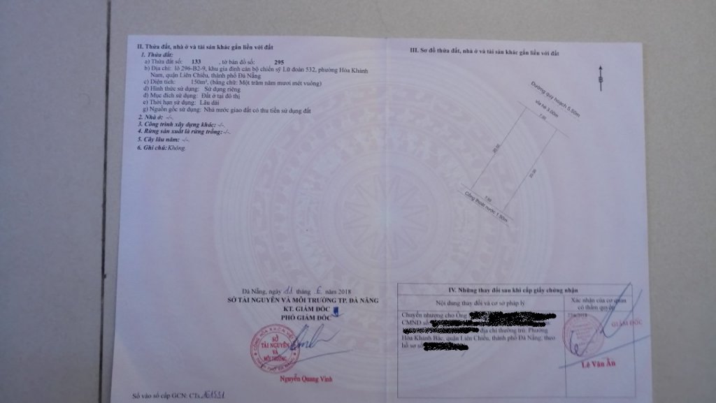 Vị trí lô đất thuộc phân lô 532 tại Phường Hòa Khánh Bắc, khu mới, diện tích ngang 7,5m dài 20m tổng diện tích 150m2 đường trước nhà 5m5 có đủ điện đường láng nhựa, đối diện là khu trung tâm thương mại ( theo kế hoạch dự án).