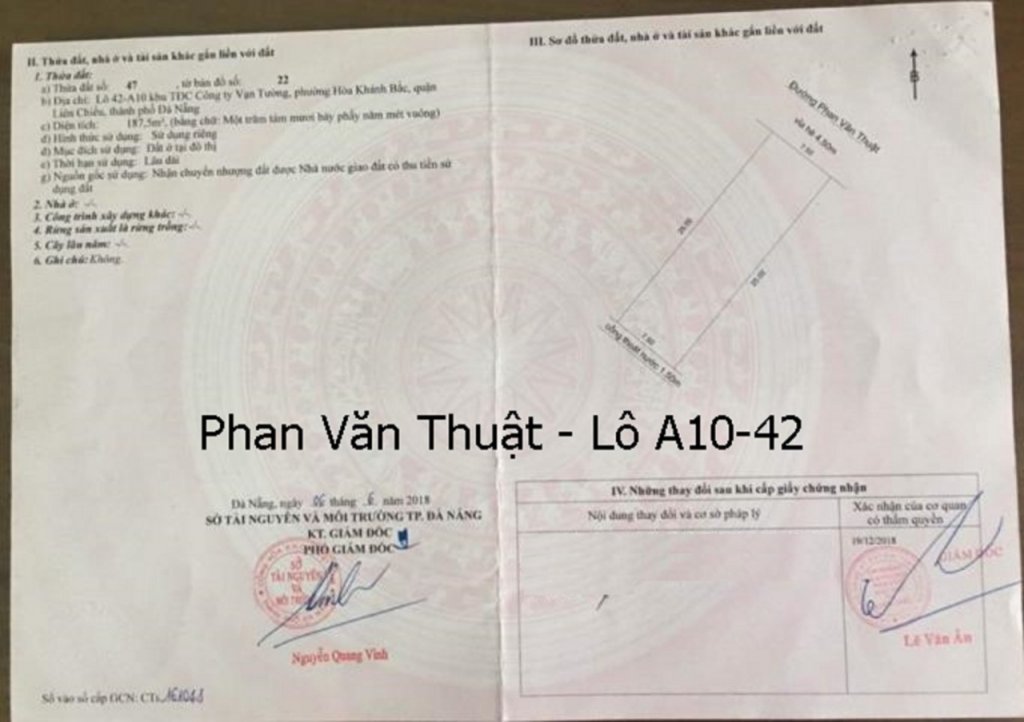 Bán lô 42, lô 50 lô 51 Phan Văn Thuật KDC Vạn Tường, Biển Liên Chiểu gần khách sạn 5* của nhật, hướng Đông Bắc, đường 7.5m lề 4.5m.