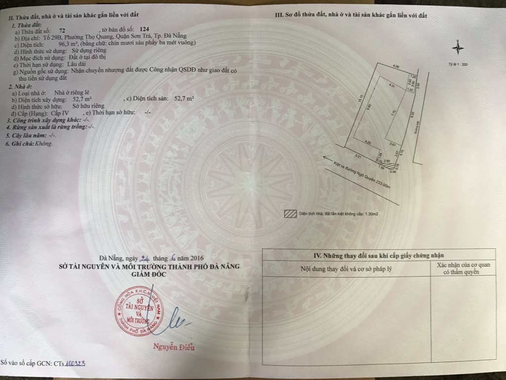 Nhà Hướng Đông Nam, Diện Tích 96m2,( hình sổ đỏ sơ đồ là hình thật của sổ nhà đất của tôi )